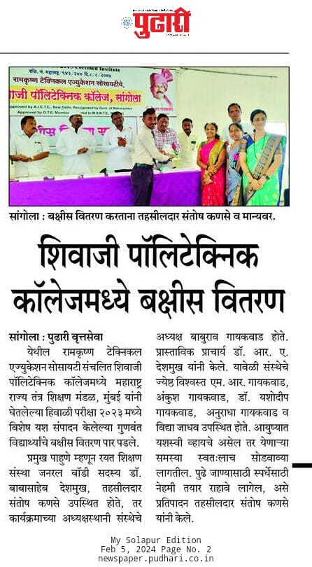 शिवाजी पोलिटेक्निक कालेज "हिवाळी परीक्षा २०२३ बक्षीस वितरण सोहळा"
