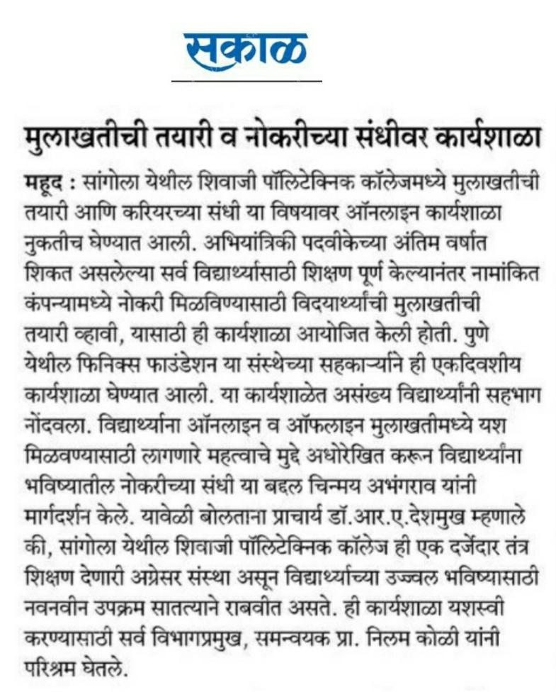 SHIVAJI POLYTECHNIC COLLEGE, SANGOLA