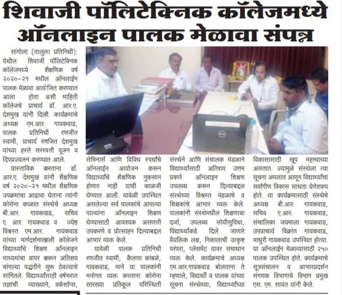 "शिवाजी पॉलिटेक्निक कॉलेज मध्ये पालक मेळावा संपन्न"